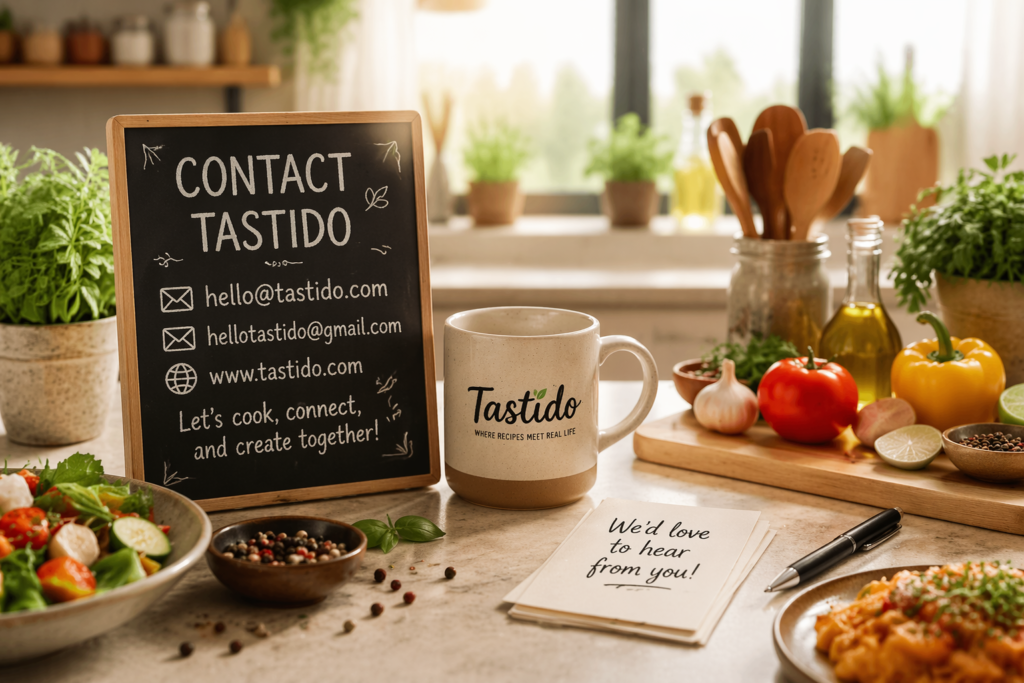 You can contact Tastido for various reasons. For example, you may want to ask about a recipe or share your cooking experience.
